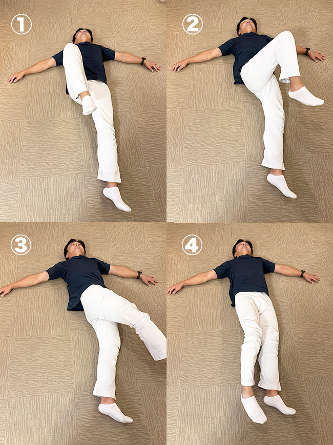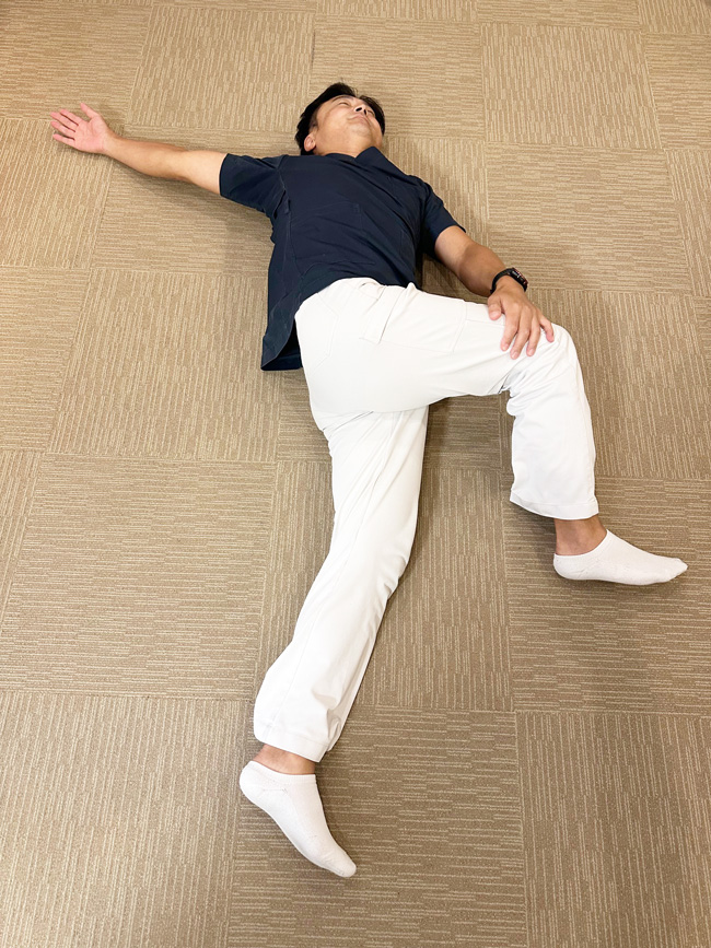 - やり方:仰向けで膝を曲げます。