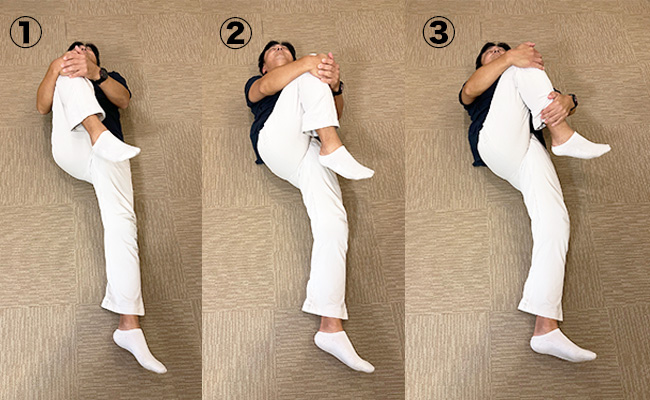 1. 膝を抱えて自分のお腹につけるようにする