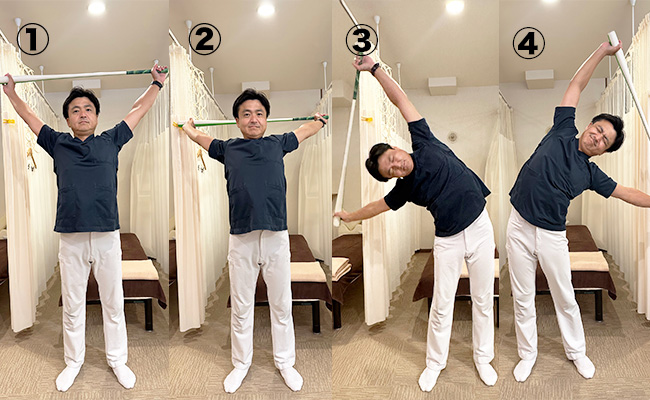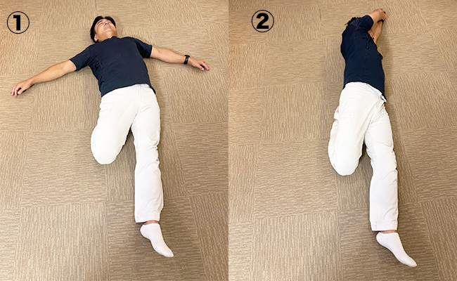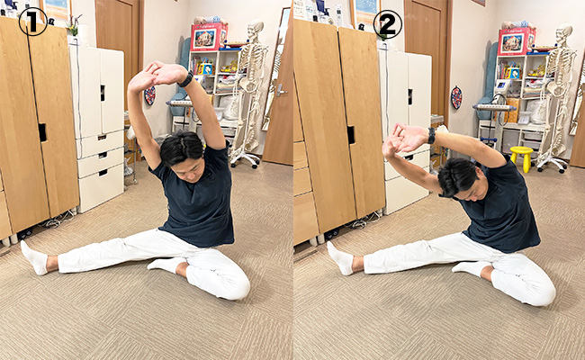 ① 体幹ひねりストレッチ